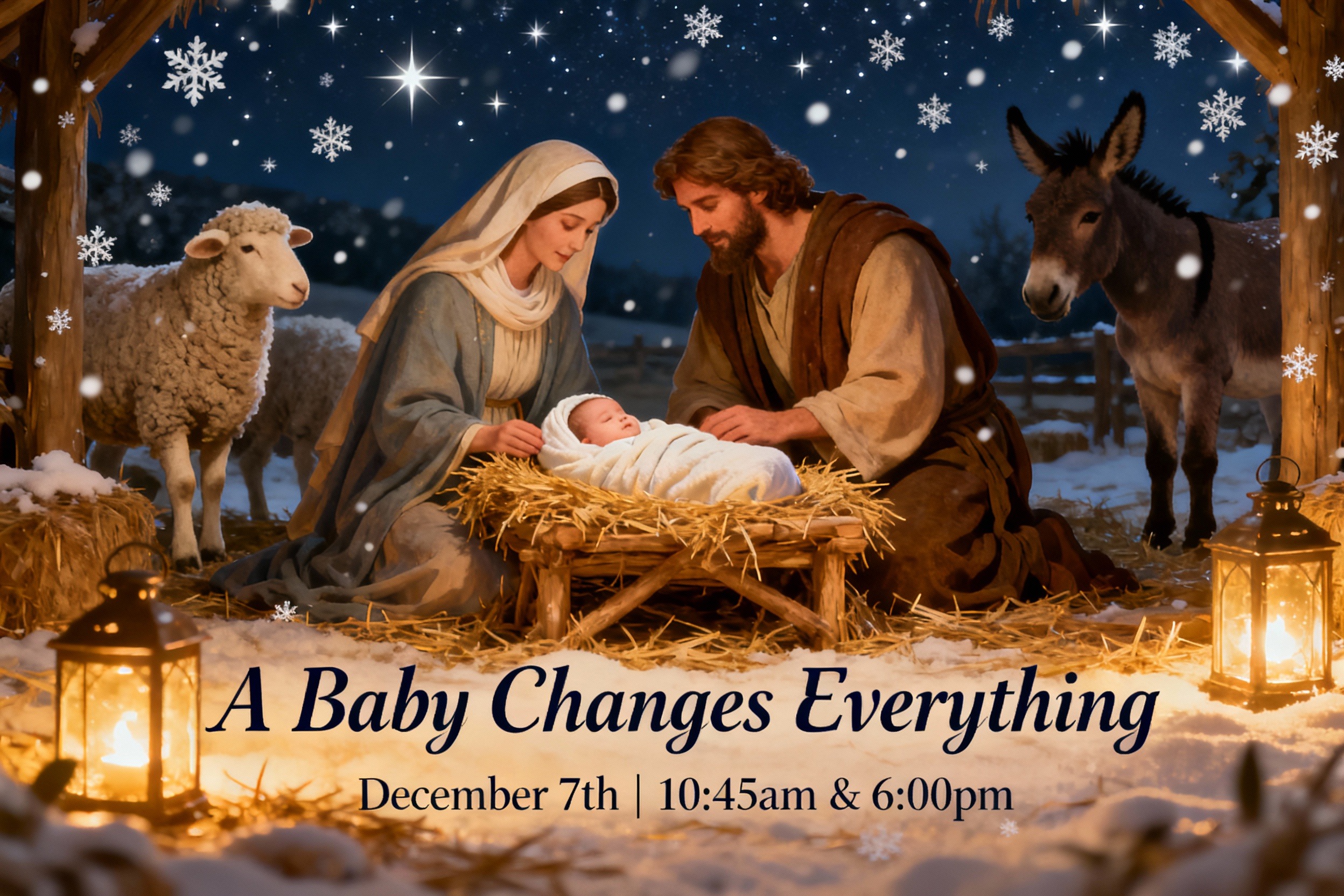 A Baby Changes Everything tells the story of three imagined, troubled seekers who almost slept through the first Christmas. Everyone is asked to bring their favorite soup, sandwiches, and/or dessert...